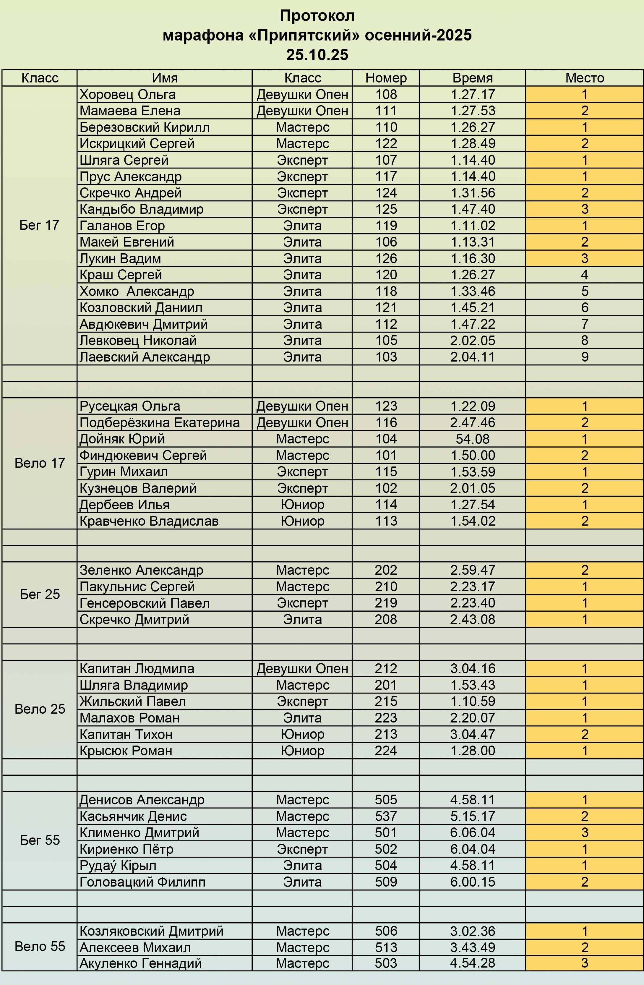 Марафон состоялся. Прогноз погоды был печальным, но не катастрофическим. Дождём нас уже заливало, теперь прищёл черёд ветра. И все кого не сдуло ветром — в финальном протоколе.